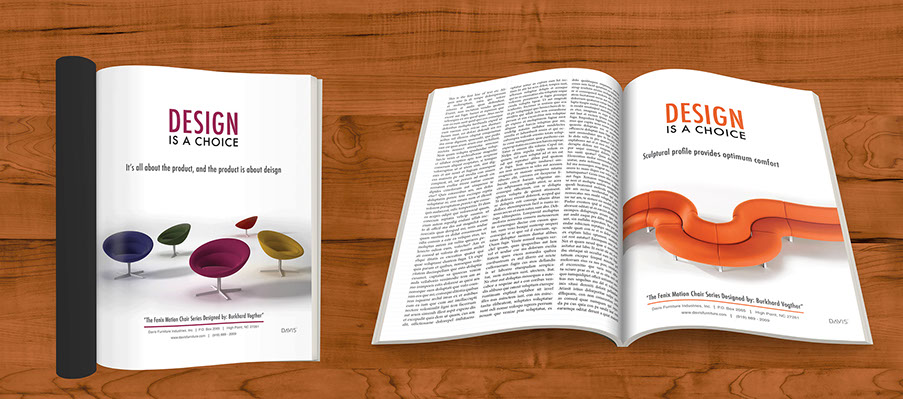 For these advertisements our job was to create useful and interesting whitespace and combine it with our knowledge of typography. With the high quality images of the Davis Furniture provided, the assignment allowed us to utilize our knowledge of design in order to produce high end advertisements.